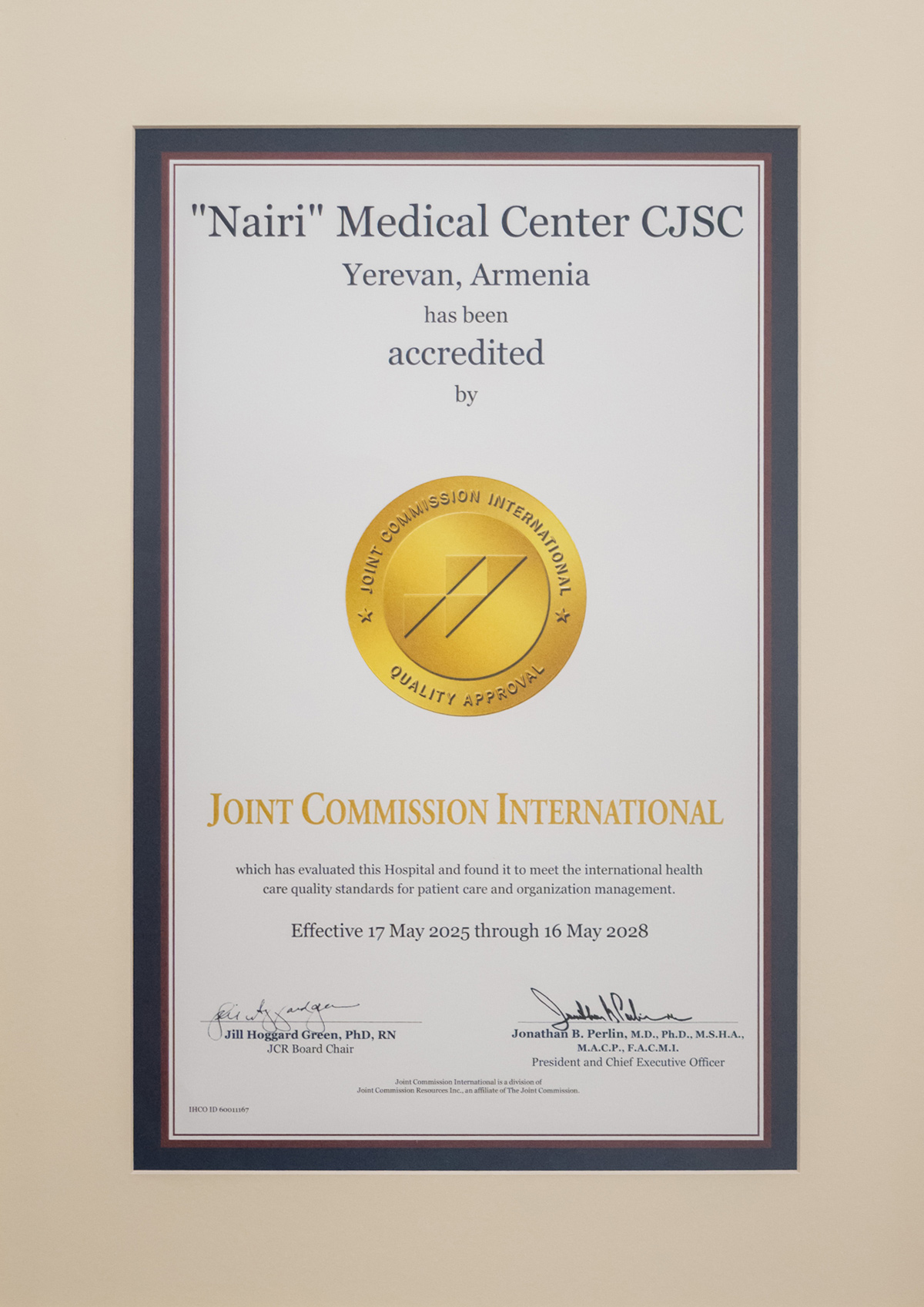We are proud to announce that Nairi Medical Center has received the Gold Standard of international hospital accreditation — JCI (Joint Commission International).