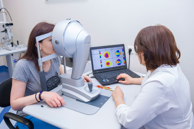 • keratotopography with specialized equipment for accurate measurement of corneal thickness and curvature
