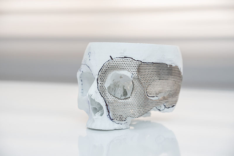 The team of surgeons, in collaboration with the maxillofacial surgeons, performed the operation to restore the defect of both cranial and facial bones.