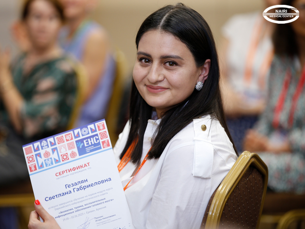 Մայիսի 29-ից մինչև հունիսի 2-ը Երևանում կայացել է Եվրասիական նեյրոռադիոլոգիական խորհրդի կոնֆերանսը, որի գլխավոր կազմերկիչներից է եղել «Նաիրի» ԲԿ-ի ռադիոլոգ, բ.գ.թ. Իրինա Տրոֆիմենկոն: Ի դեպ, կոնֆերանսի խորհրդի նախագահներից էր «Նաիրի» ԲԿ-ի ռադիոլոգիայի բաժանմունքի ղեկավար, Ռադիոլոգների հայկական ասոցիացիայի նախագահ Կոստան Ղալումյանը: Միջոցառմանը ներկա են գտնվել նաև Հասմիկ Ստեփանյանը, Արմեն Վասիլյանը և մեր կենտրոնի երիտասարդ ռադիոլոգները։ Կոնֆերանսին մասնակցել են նաև Հայաստանի և ԱՊՀ-ի առաջատար կլինիկաների ռադիոլոգները: Հպարտությամբ ենք նշում, որ լայնամասշտաբ նման միջոցառումներն իրականացվում են Հայաստանում՝ մեր մասնագետնի գլխավորությամբ: