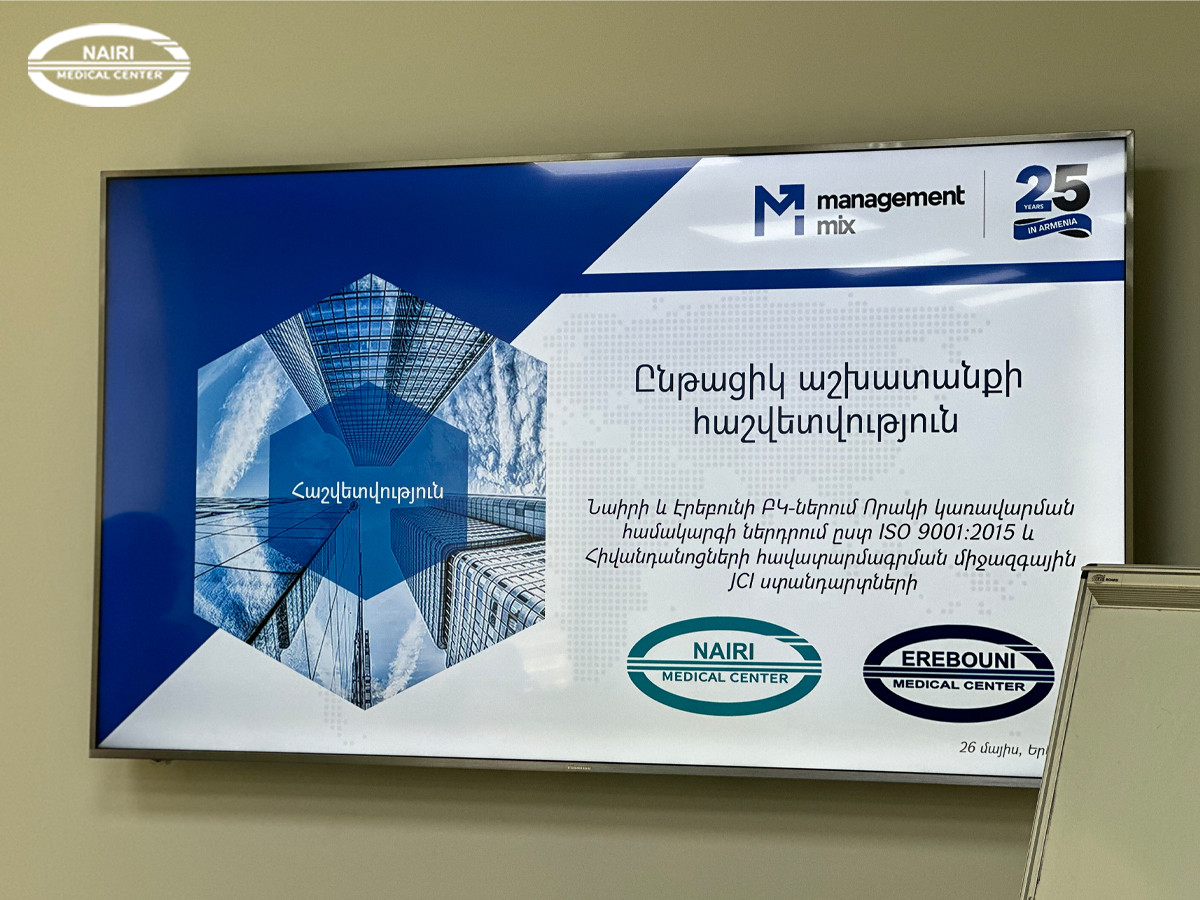 «Նաիրի» բժշկական կենտրոնը նախաձեռնել և արդեն իսկ իրականացնում է Որակի կառավարման միջազգային ISO ստանդարտի ներդրման և Joint Commission International (JCI) հավատարմագրման գործընթաց