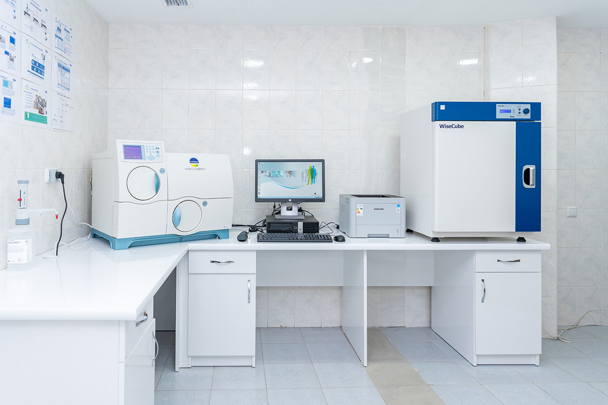 В микробиологической лаборатории осуществляются исследования на предмет выявления микрофлоры, диагносцируются различные кишечные инфекции, а также псевдотуберкулёз (Yersinia), бруцеллёз, уреаплазма, дифтерия, анаэробные инфекции, коклюш и прочее.