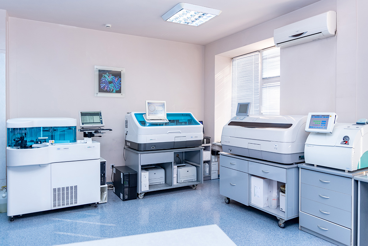 Благодаря применению современного оборудования и анализаторов последнего поколения служба лабораторной диагностики осуществляет биохимическое, клиническое, иммунологическое, гормональное и серологическое тестирование различных биологических жидкостей. В лаборатории действует система ургентной диагностики для пациентов службы реанимации и неотложной терапии.